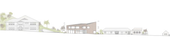 kétszintes, a park felé háromszintes az épület.